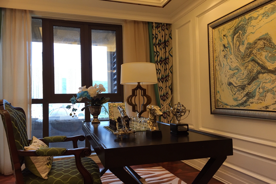 本案设计概念是对于具有高贵气质与慑人风采的女性形象的想象,风格奢华而不奢靡,贵气而不张扬,简化的古典线条,带着一种悠闲舒适感。空间富有的钻石绒硬包以及镜面对空间的延伸,让空间的质感细腻的呈现出了别样的奢华度。大面积的珠光白漆饰面增加了空间的温婉之气,极富心思的家具配饰,隐约的显露了她的内在美。设计师想让样板空间能让人感觉娴静舒适,让它高贵优雅,倾城倾国之气弥散开来。