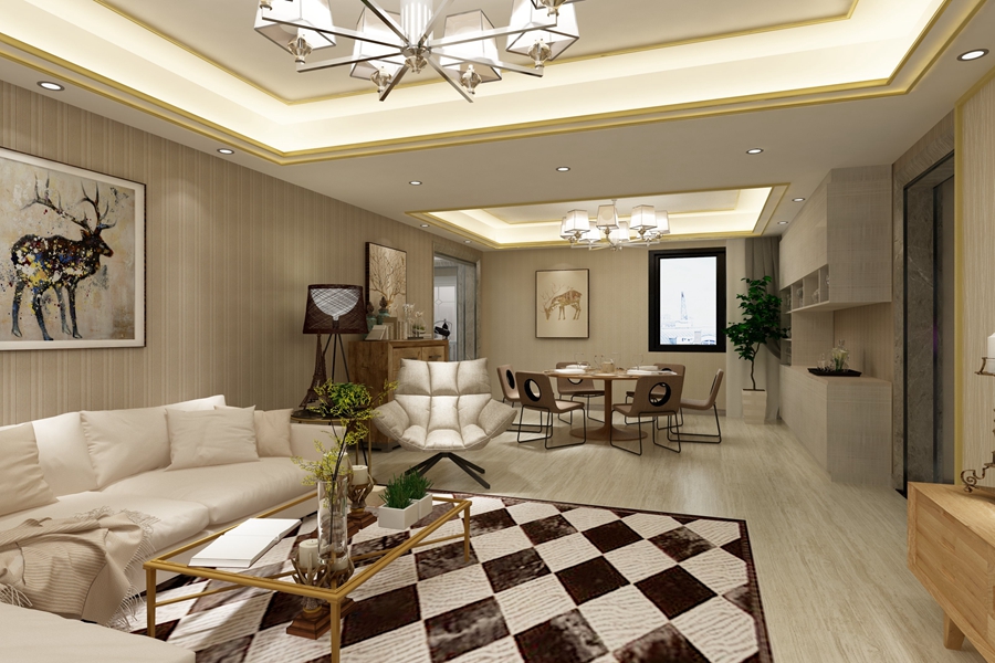 现代风格,运用了不锈钢线条突显与时俱进的现代产物,而黑色的经典,会让整体的氛围提升品质感。从业主比较豪爽的性格,为达到业主对于舒适和质感的要求。从而应用了简约的木纹地砖,造型上地面和墙面上相互呼应,主人的性格和装饰元素相互之间有种特别的联系。