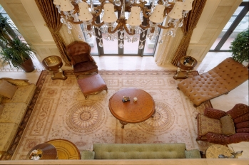 本案设计主要风格定向为奢华欧式,这种风格强调以华丽的装饰、浓烈的色彩、精美的造型达到雍容华贵的装饰效果。欧式客厅顶部喜用大型灯池,并用华丽的枝形吊灯营造气氛。门窗上半部多做成圆弧形,并用带有花纹的石膏线勾边。入厅口处多竖起两根豪华的罗马柱,室内则有真正的壁炉或假的壁炉造型。墙面经典欧式花纹墙纸,以烘托豪华效果。地面材料以石材或地板为佳。欧式客厅非常需要用家具和软装饰来营造整体效果。深色的橡木或枫木家具,色彩鲜艳的布艺沙发,都是欧式客厅里的主角。还有浪漫的罗马帘,精美的油画,制作精良的雕塑工艺品,都是点染欧