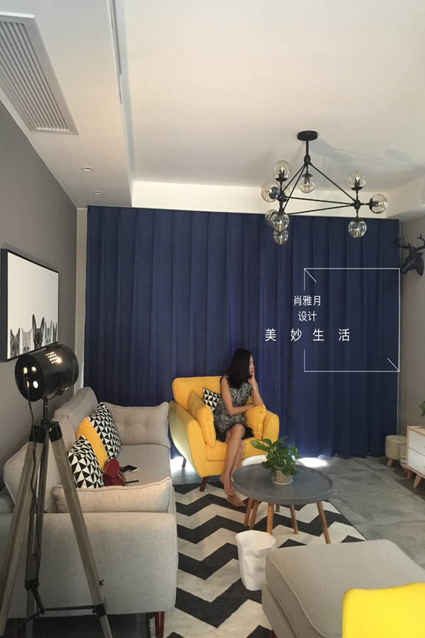 本案采用的就是北欧结合LOFT风格演绎而成。业主喜欢简约而不简单的感觉,更喜欢颜色的碰撞,所以大胆采用了蓝色与黄色的碰撞。