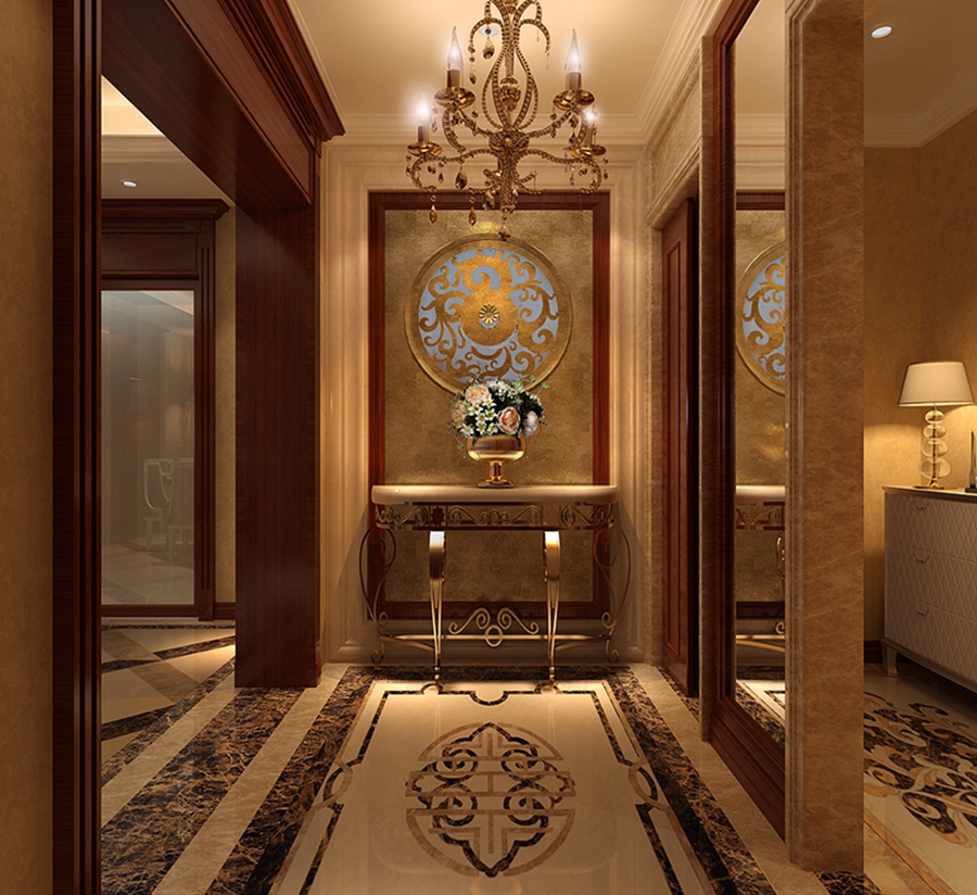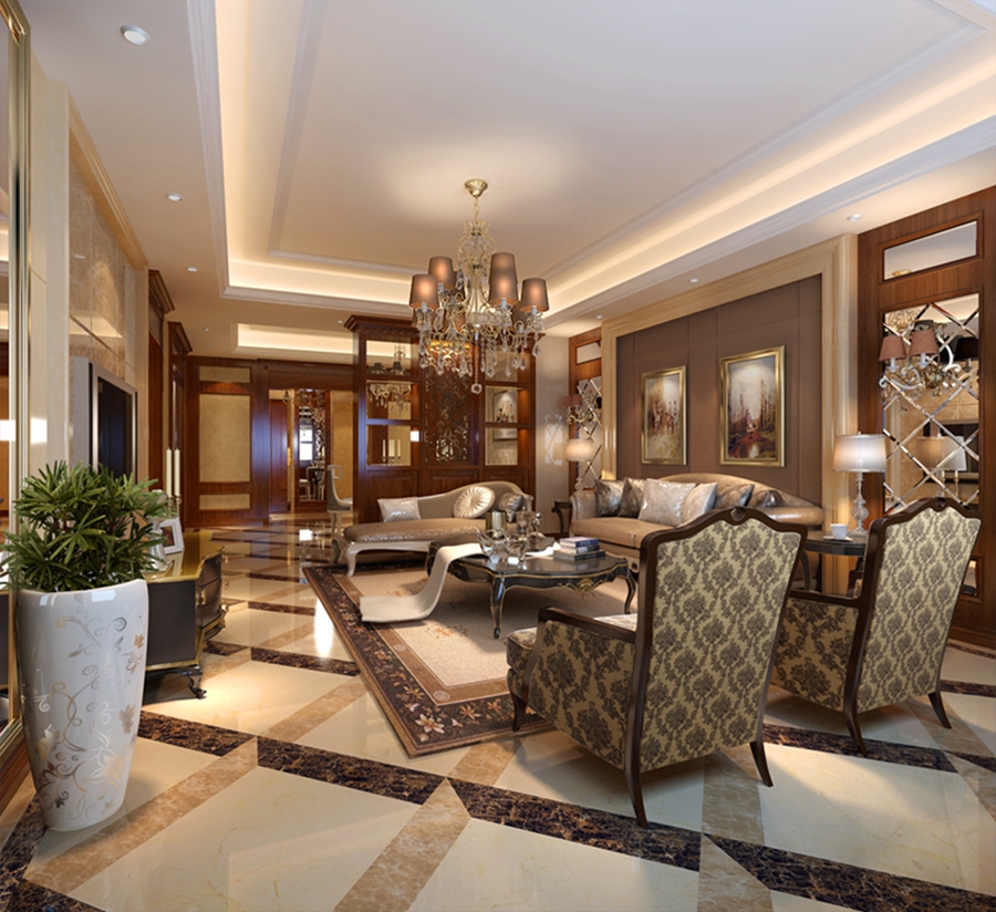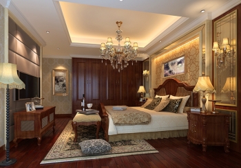 楼盘:两江新宸 风格:美式 户型:复式 预算:130万 面积: 220平米 家庭成员:四口之家 描述: 本案在设计手法上,以美式传统风格为主调,吸取了文艺复兴时期的古典元素,既不过分 张扬,而又恰到好处地把雍容典雅之气渗透到每个角落,既突出房子本身的自然优势又适当彰显 业主的个人品味。 客厅经过精心布置,简单大方。丰富的天花造型加上仿古吊灯两两相趣成 章,给人以庄重豪气之感;整个地面运用了仿古地砖做拼贴饰面,与墙面作旧感的肌理漆形成对 应,